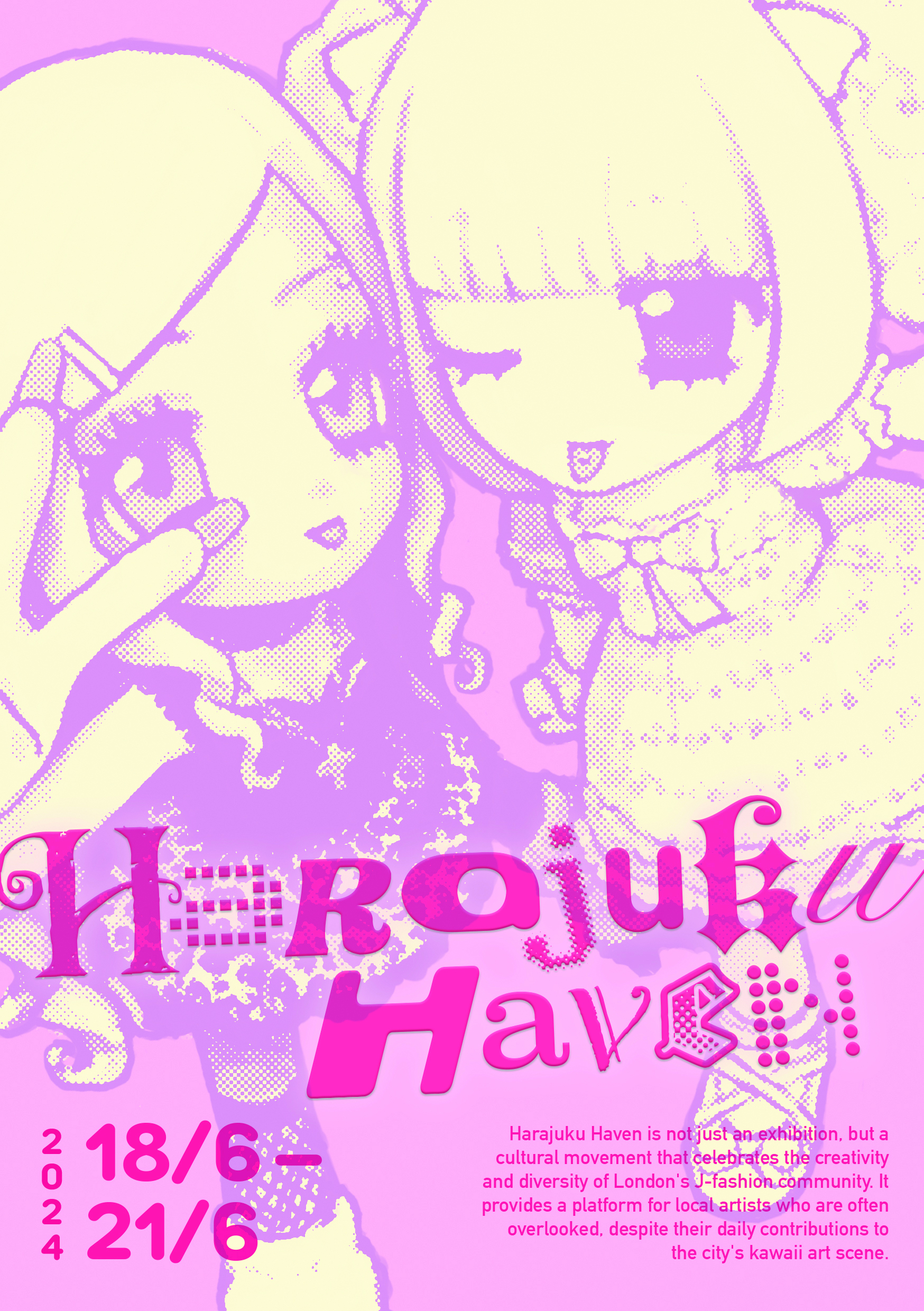 Born out of our mutual love for Japanese fashion and cute art, Harajuku Haven began in 2024 as a passion project run by Mae Rose and I. We primarily run an exhibition that showcases creatives in the J-fashion community all across the UK, but we have created a whole community around Harajuku Haven through monthly meet-ups and events! So far, we have had more than 1500 attendees across two instalments of the exhibition. As the graphic designer for Harajuku Haven, I create most of the exhibition ephemera. The creative direction is inspired by my own love of 2000s Japanese stationery and fashion magazines.